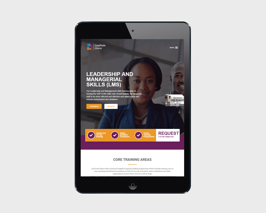 CorpTrain Ghana is a Capacity Building, Coaching and Business Consulting Company based in Accra, they offer weekly training programs and thus requires a dynamic website to market the details of their courses to their clients. In view of this, we designed and developed a Content Managed (CMS) website for them using MODX.